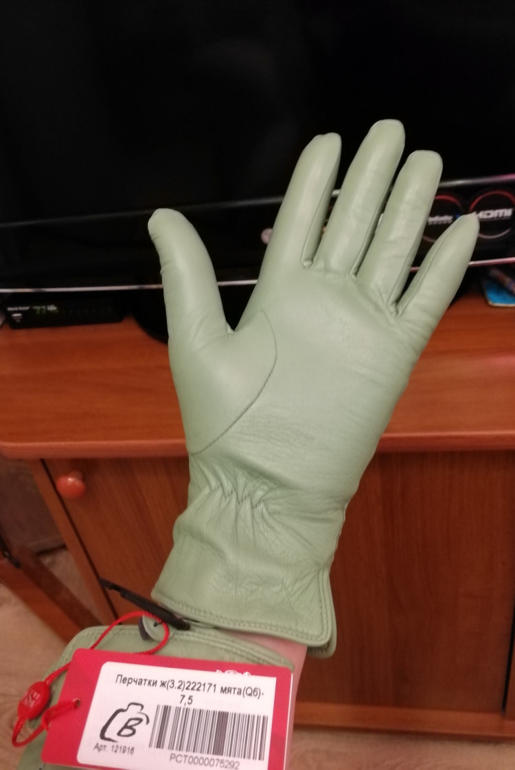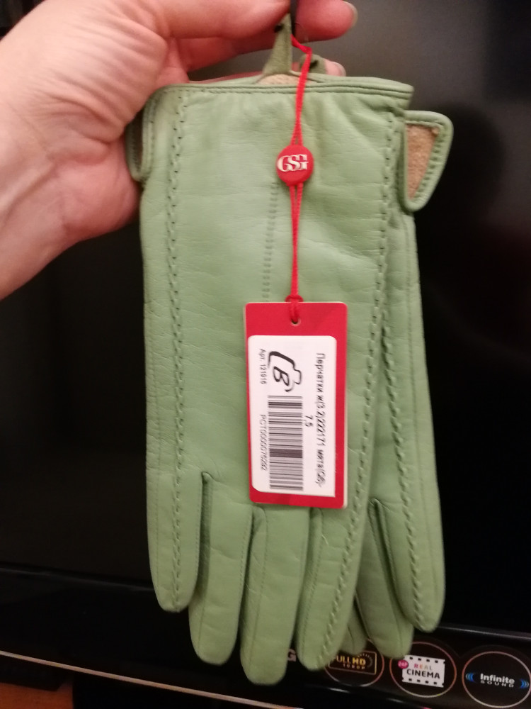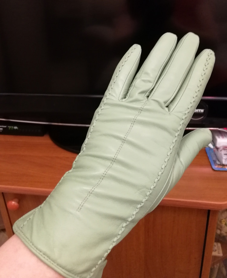 Сегодня получила чудесные перчатки, большое спасибо! Очень довольна, нет никаких нареканий! Качество отличное, нежная и мягкая кожа, уютная и удобная посадка, шикарный мятный цвет! Правда не удержалась и сделала снимки сразу, после получения, а при вечернем освещении идёт искажение передачи оттенка, но в любом случае этот цвет прекрасен! Перчатки подошли точно по размеру. Опасалась, что будут маломерить, но именно в этой модели всё совпало! Хотела поблагодарить за то, что в описании товара представлена размерная таблица, это очень удобно. И ещё немаловажно, что длина пальцев в перчатках не коротенькая, а вполне нормальная, мне подошла идеально! Спасибо за отличный товар!