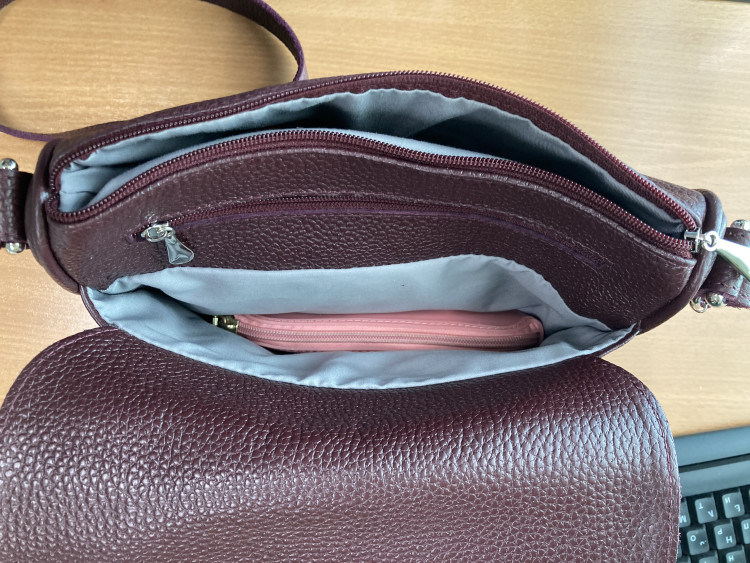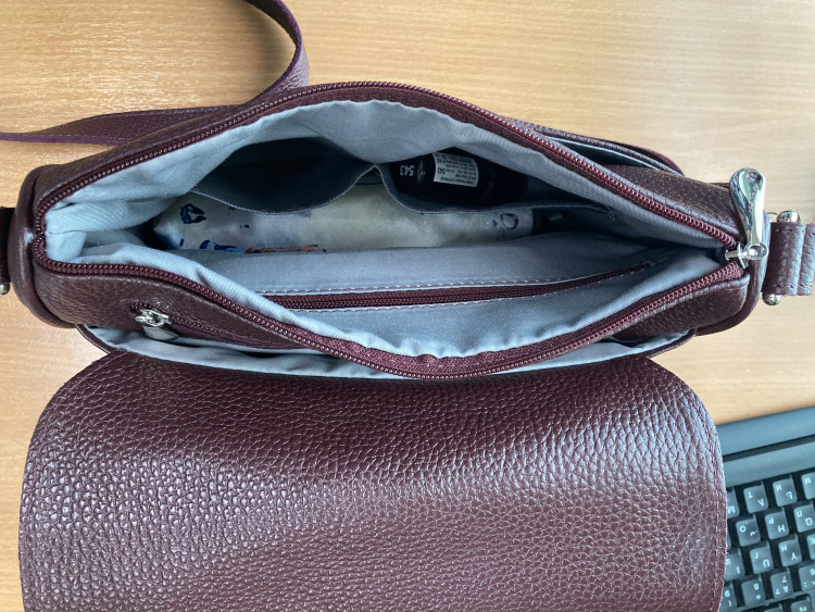Сумка очень понравилась, средняя, то что нужно для походов на работу! Входит и зонт, и косметичка и вкусняшки к обеду! Кожа приятная тактильно, очень плотная и приятно пахнет! Много кармашков для мелочи! Форму держит.