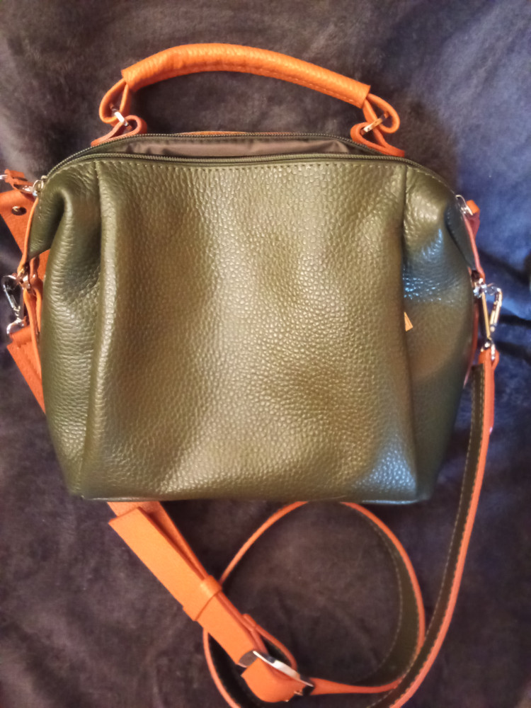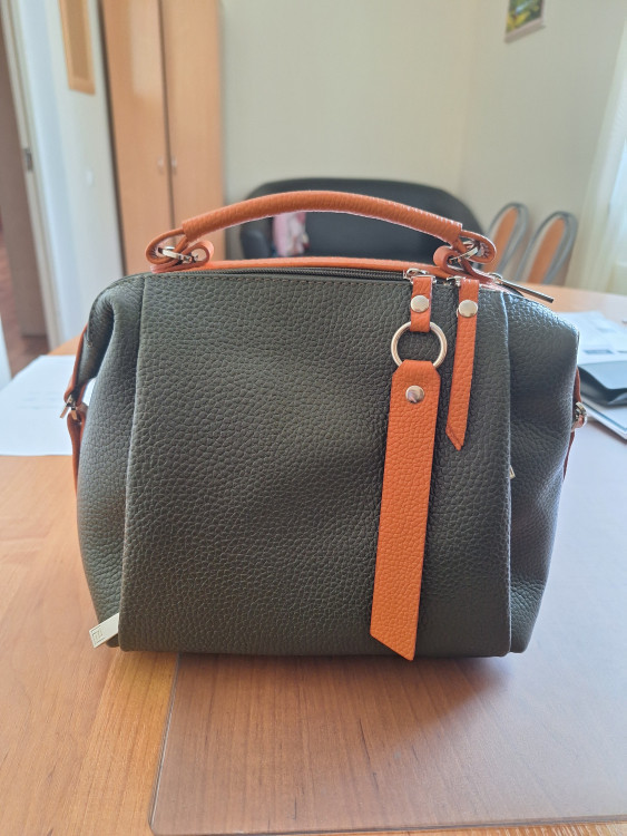 Сумка добротная и практичная. Кожа мягкая и приятная на ощупь. Очень красивое сочетание цветов: темно-зеленый (хаки) и бежевый. Довольно вместительная несмотря на небольшой размер.