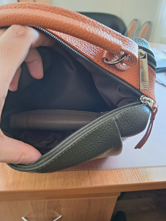 Сумка отличная. На вид небольшая, но очень вместительная. Много отделов и каждый закрывается на молнию.