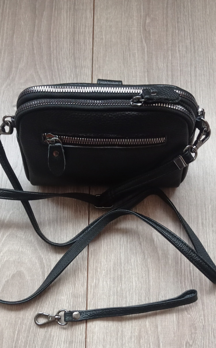 Просто находка, для работы и для жизни. Долго искала такую фактуру, чтобы на цепочке и не мини клатч, а еще на молнии, чтобы вещи не выпадали. Очень удобная и приятная по цвету