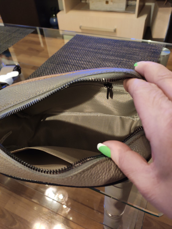 Сумка очень понравилась. Рекомендую к покупке. Сумка кожаная. Два внешних кармана и два внутренних (один на молнии). Для тех кто любит небольшие сумочки, самое то.