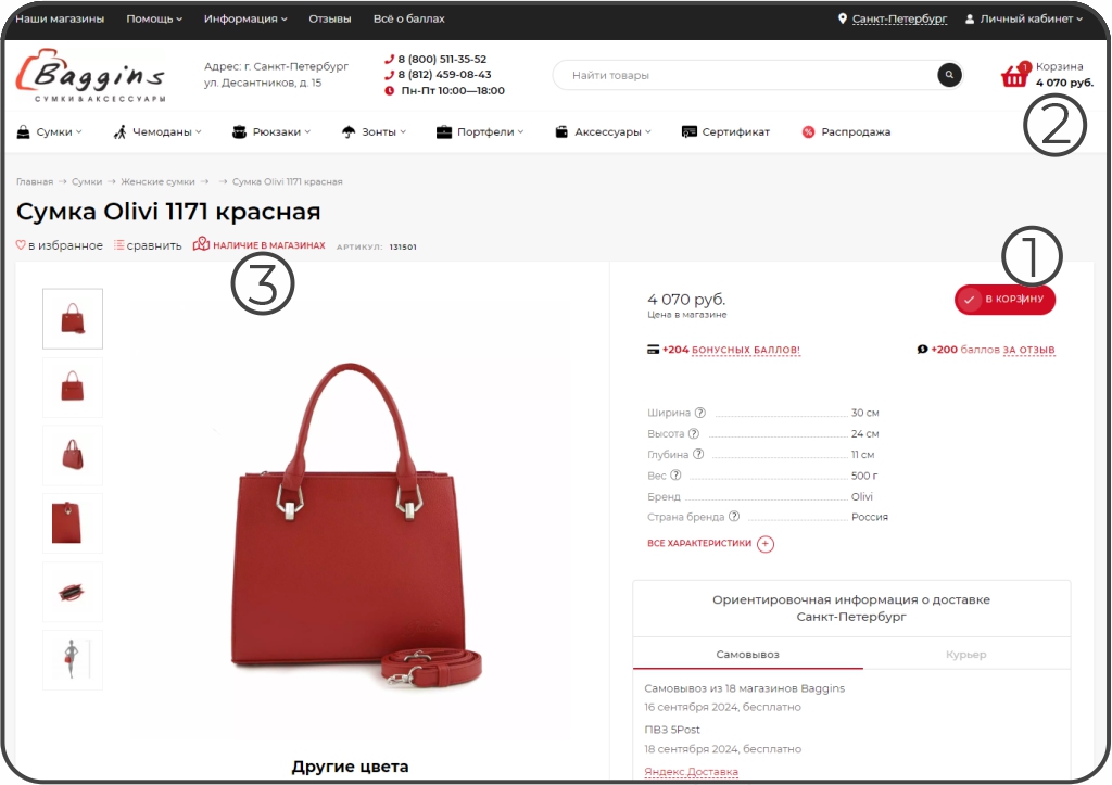 Отложите товар, нажав кнопку В КОРЗИНУ