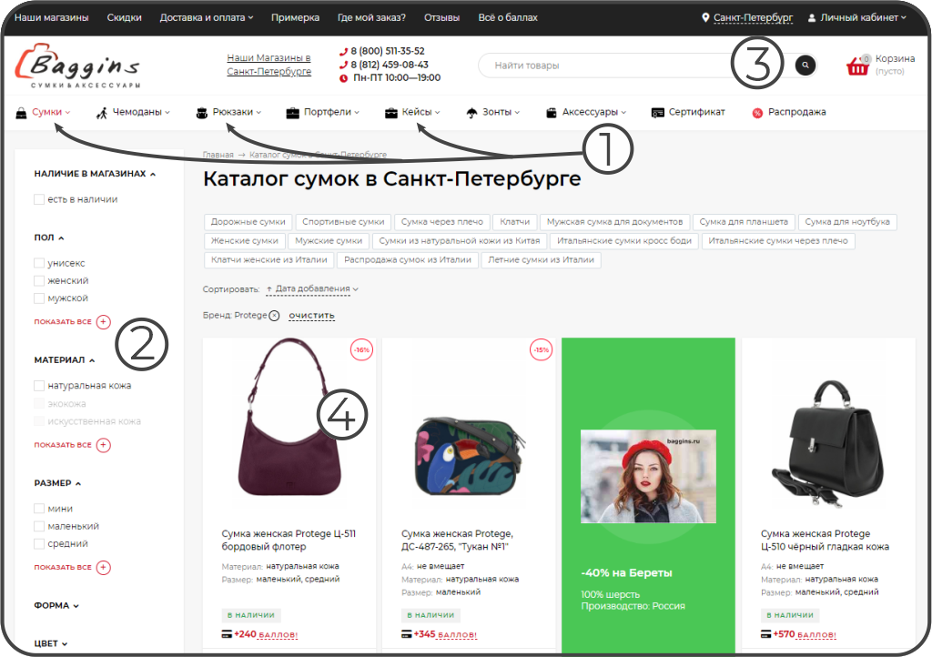 Зайдите в наш каталог товаров (под логотипом Baggins) и найдите то, что искали.
