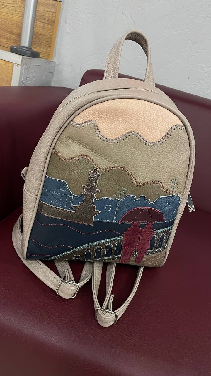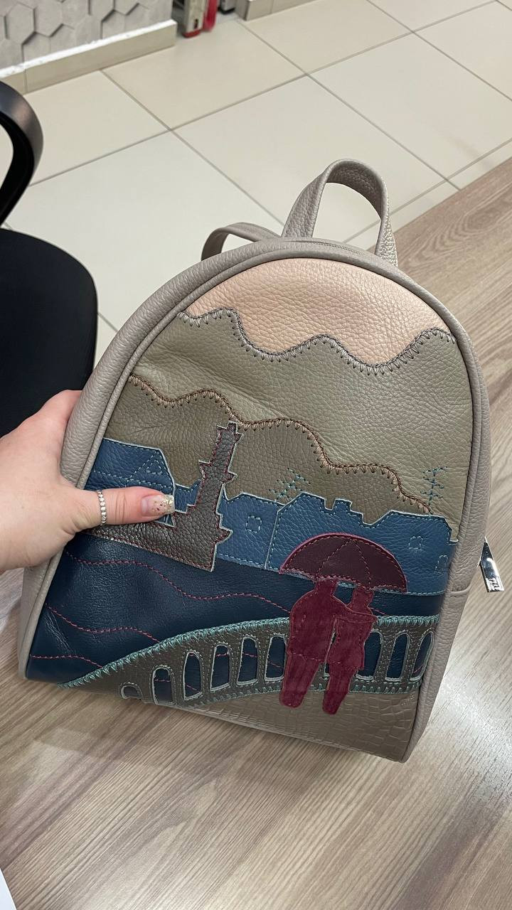 Рюкзак шикарный! Вместительный, стильный, из натуральной кожи, на каждый день. Очень люблю такие сумки и рюкзаки с аппликацией. Тем более ручная работа. Не первая покупка от данных производителей. Сумки служат уже много лет.