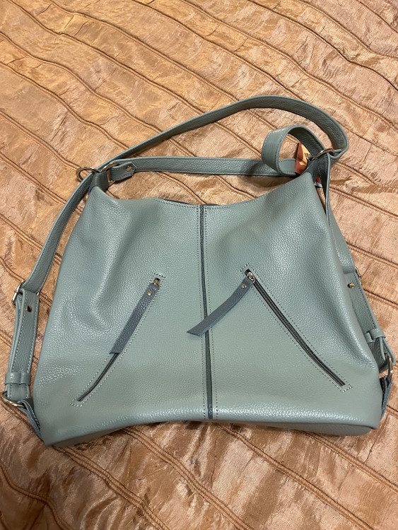 Покупаю подобного фасона кожаную сумку данного производителя второй раз . Первая сумка продолжает отлично служить своей хозяйке-проверено непростыми условиями пользования- зимними сибирскими морозами, летней жарой, большим весом содержимого !! Жаль только , что в магазинах очень скудная цветовая гамма этих сумок -поэтому пришлось делать интернет-закпз .Сегодня забрала свою новую сумочку из ближайшего магазина -Чему очень рада , покупкой довольна -летний сезон буду пользоваться мятного цвета сумкой !!!