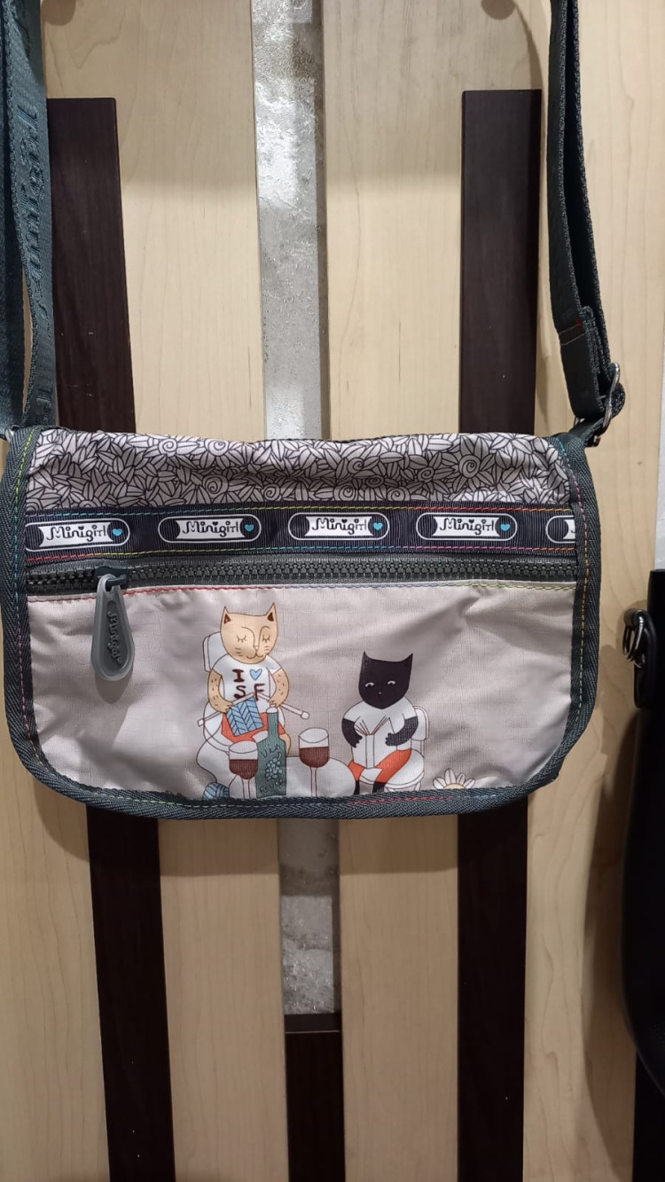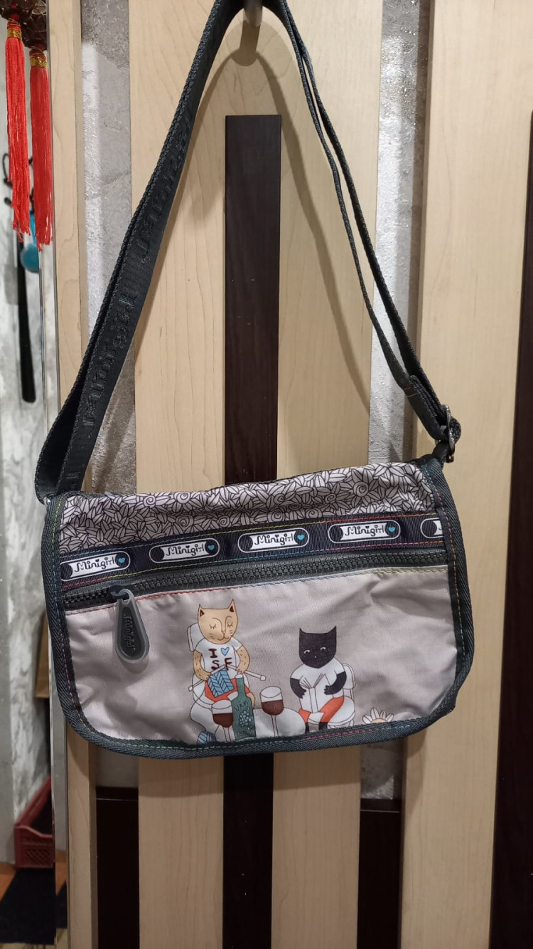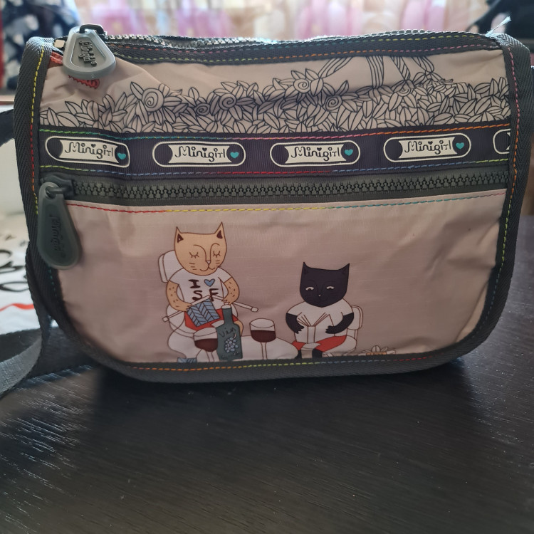 У меня это уже вторая сумка из этой серии,очень нравятся котики..Маленькая сумочка,для прогулок то,что надо.