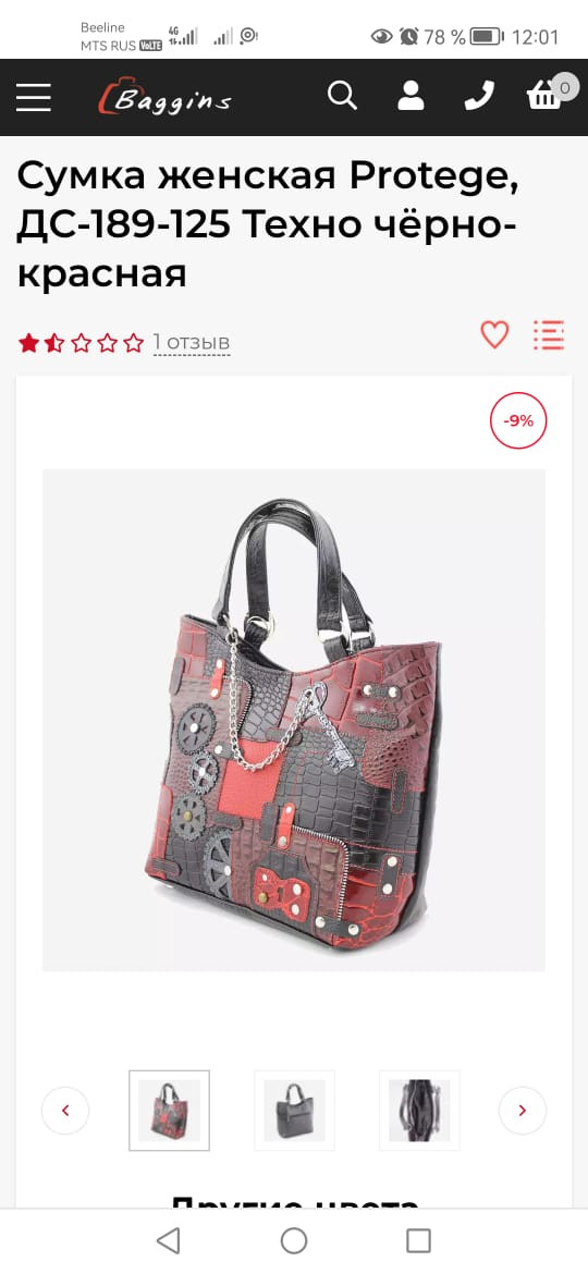 Сумка женская Protege, ДС-189-125 Техно чёрно-красная отзывы